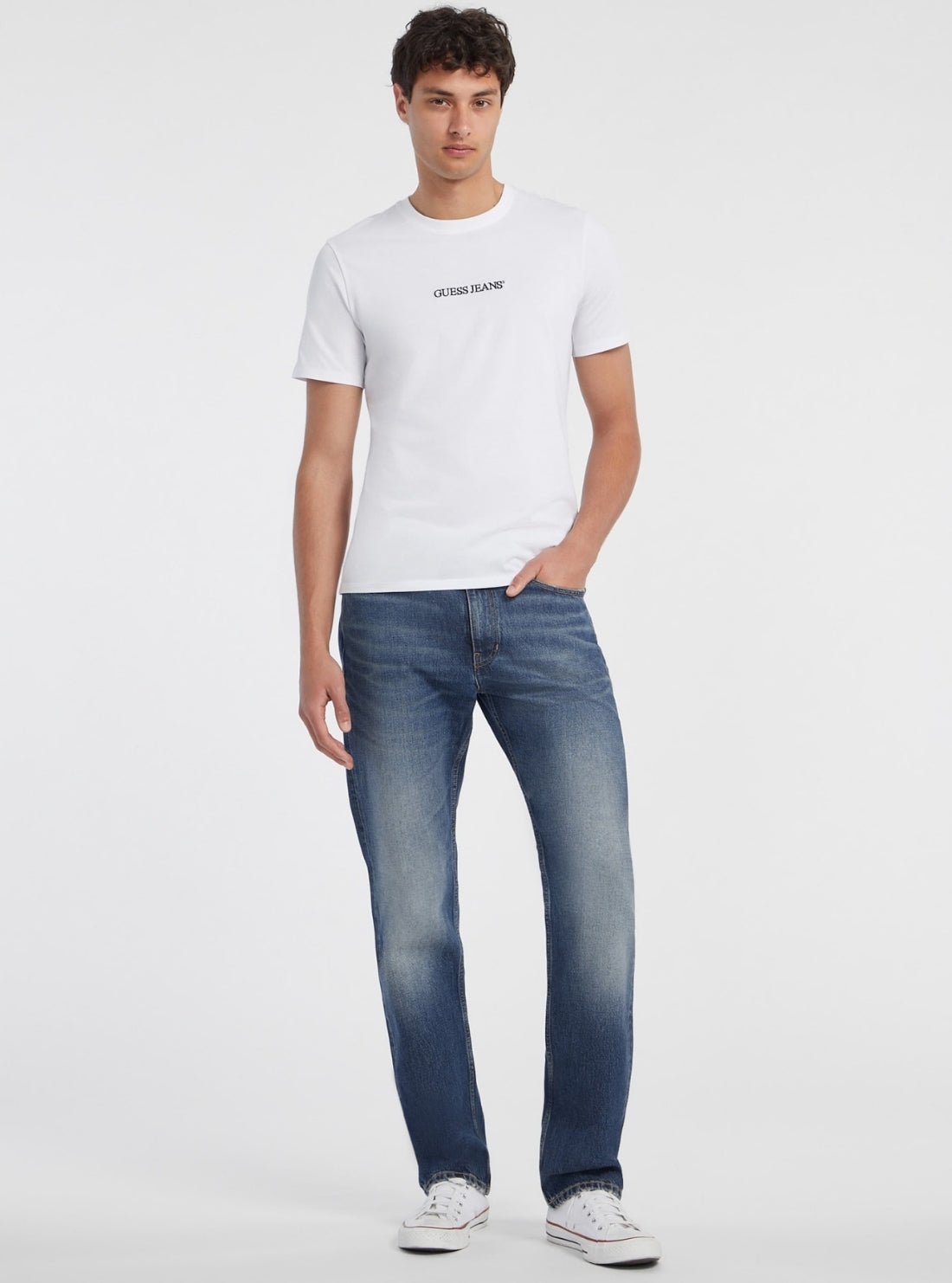 Guess Jeans White Slim Logo T-Shirt M4YI52K8HM0 Front View Guess Jeans White Slim Logo T-Shirt M4YI52K8HM0 Full View Guess Jeans White Slim Logo T-Shirt M4YI52K8HM0 Flatlay Guess Jeans White Slim Logo T-Shirt M4YI52K8HM0 Detail View Guess Jeans White Slim Logo T-Shirt M4YI52K8HM0 Back View