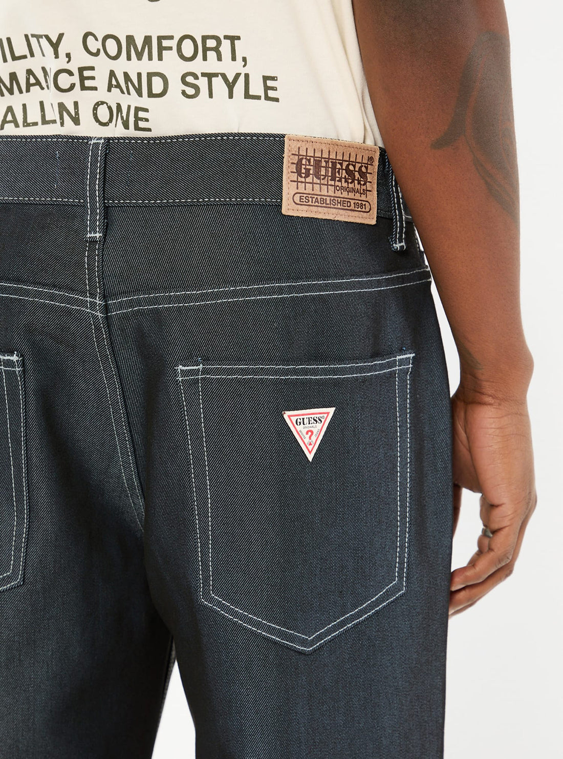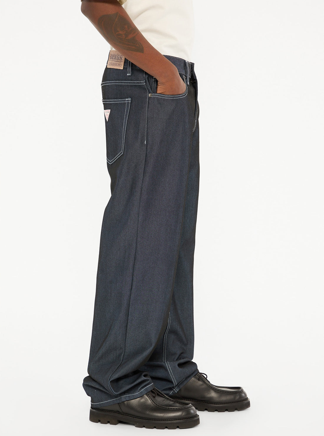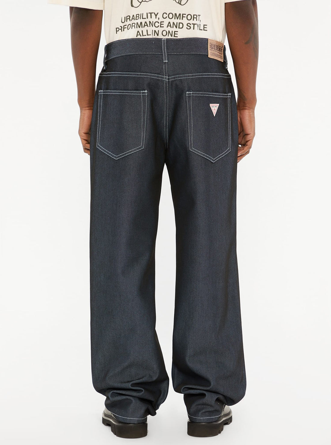 The Guess Originals Kit Baggy Pant redefines casual style with a relaxed fit and baggy leg, perfect for modern streetwear enthusiasts. Featuring a medium-rise waist that sits comfortably on the hips, these indigo wash denim jeans are designed with a unique appearance due to the distinctive wash process. Complete with five-pocket construction, a zip fly, and button closure, these jeans bring both style and practicality to your wardrobe.
