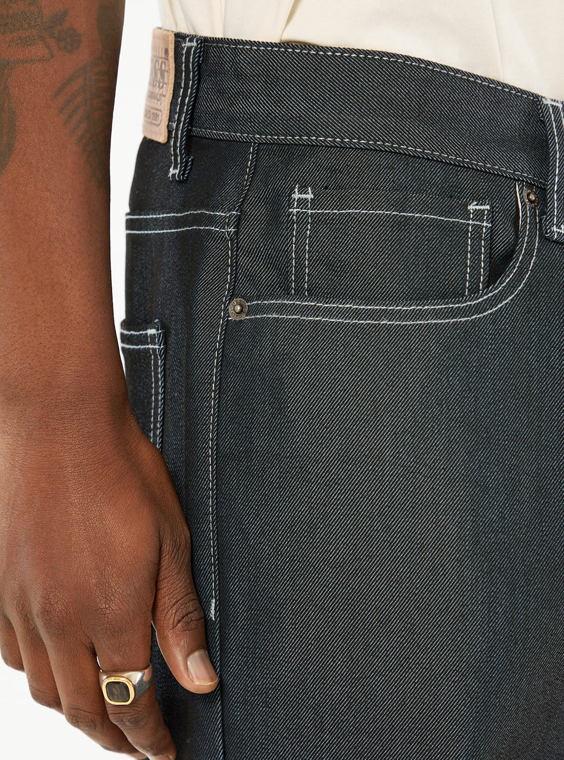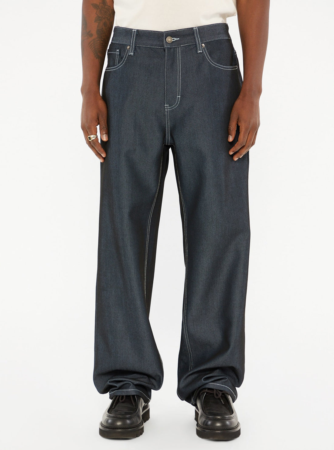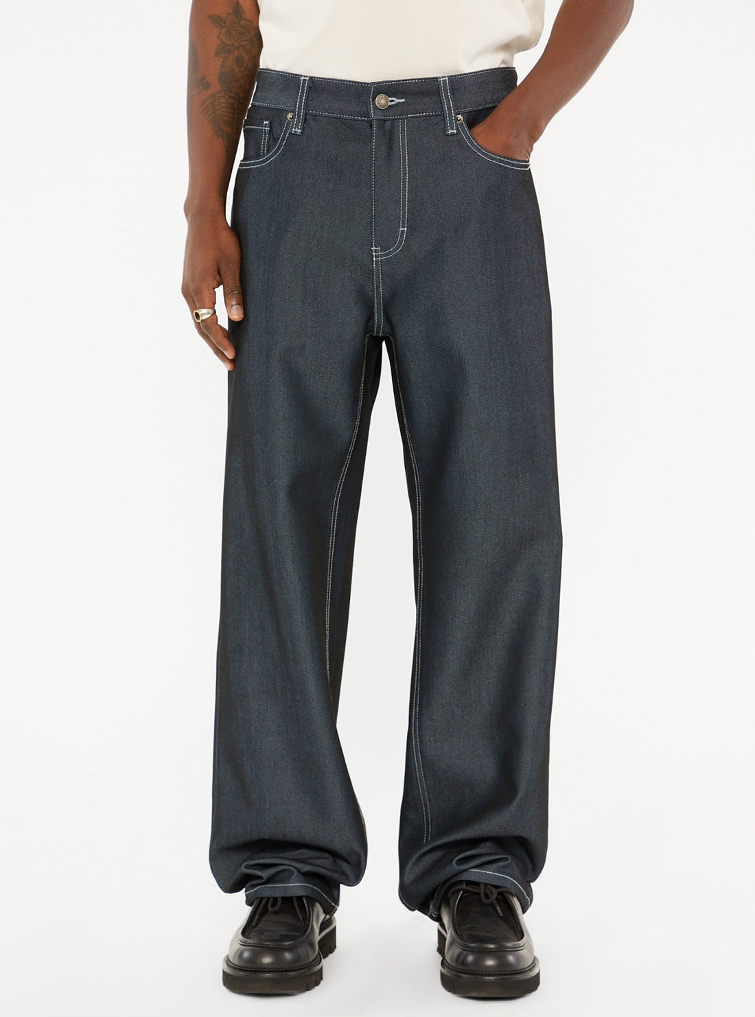The Guess Originals Kit Baggy Pant redefines casual style with a relaxed fit and baggy leg, perfect for modern streetwear enthusiasts. Featuring a medium-rise waist that sits comfortably on the hips, these indigo wash denim jeans are designed with a unique appearance due to the distinctive wash process. Complete with five-pocket construction, a zip fly, and button closure, these jeans bring both style and practicality to your wardrobe.