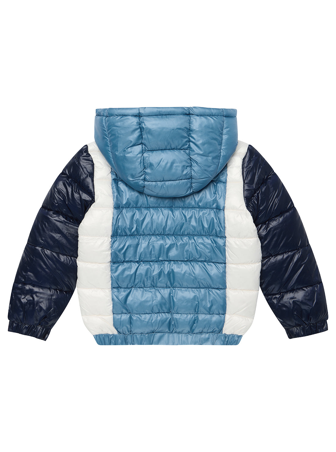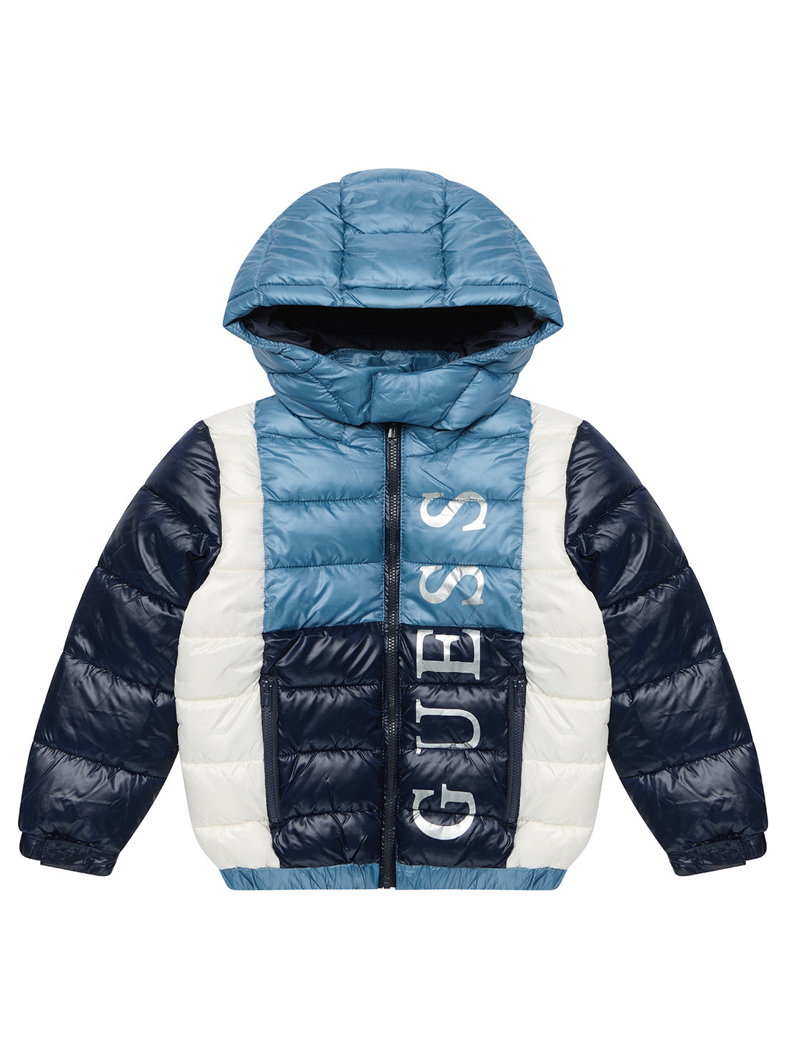 Keep your little one warm and on-trend with the GUESS Hooded Padded Jacket. Designed in a cool Blue Graphite Multi colourway, this lightweight quilted jacket features a cosy hood, full zip closure, and elasticated cuffs and hem for a snug fit. Complete with sewn-in side pockets and bold GUESS logo text on the front, it’s a perfect mix of comfort and style for everyday adventures.