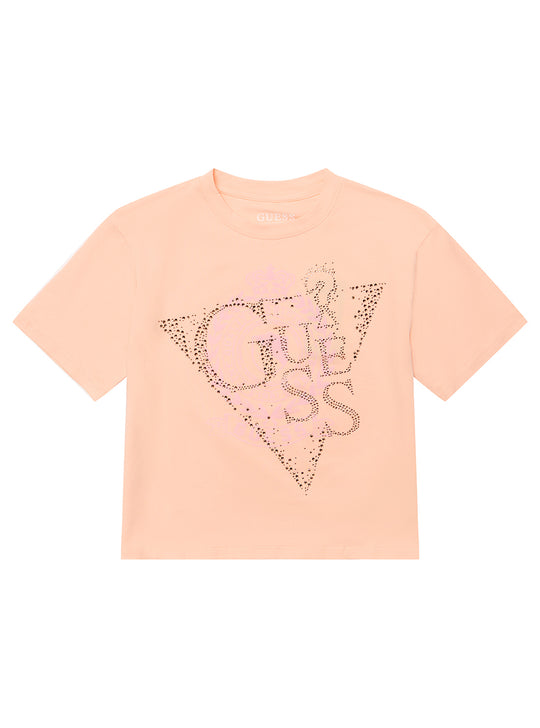Add a pop of sparkle to your little one's wardrobe with the GUESS Kids Peach Short Sleeve T-Shirt. The diamanté GUESS logo detail adds a touch of glam to this everyday essential. With a crew neckline and short sleeves, it's perfect for any occasion. Made from a soft and stretchy cotton blend.