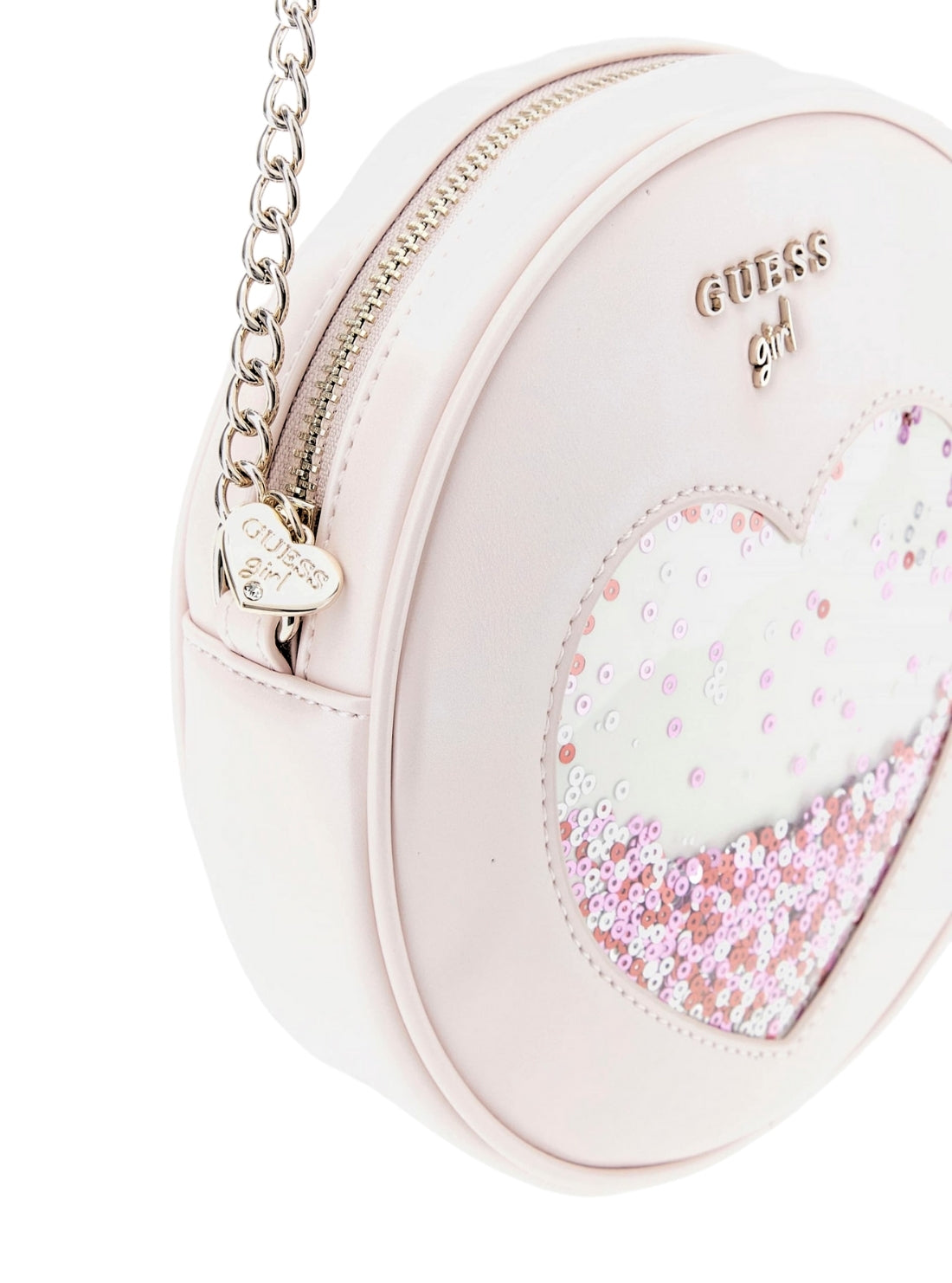 GUESS Kids Pink Mini Crossbody Circle Bag J5GZ19WH7G0 Front View GUESS Kids Pink Mini Crossbody Circle Bag J5GZ19WH7G0 Detail View GUESS Kids Pink Mini Crossbody Circle Bag J5GZ19WH7G0 Back View