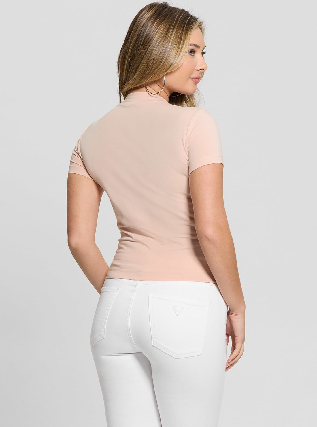 Pink Mock Neck Top Pink Mock Neck Top Full View Pink Mock Neck Top Crop View Pink Mock Neck Top Close Up Pink Mock Neck T-Shirt