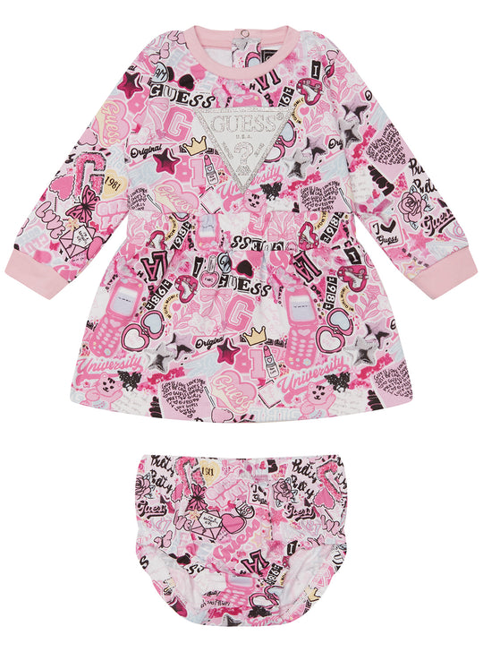 GUESS Kids Pink Multi Baby Girl Dress & Panty Set (0-12m) A5YK02KA6R4 Front View GUESS Kids Pink Multi Baby Girl Dress & Panty Set (0-12m) A5YK02KA6R4 Back View