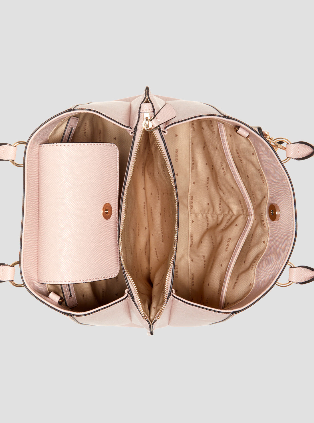 GUESS Women's Pink Noelle Girlfriend Satchel Bag ZG787906LTR Front View GUESS Women's Pink Noelle Girlfriend Satchel Bag ZG787906LTR Side View GUESS Women's Pink Noelle Girlfriend Satchel Bag ZG787906LTR Internal View GUESS Women's Pink Noelle Girlfriend Satchel Bag ZG787906LTR Back View