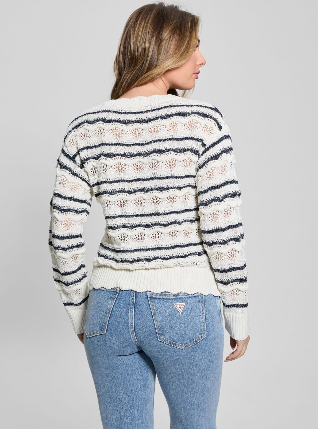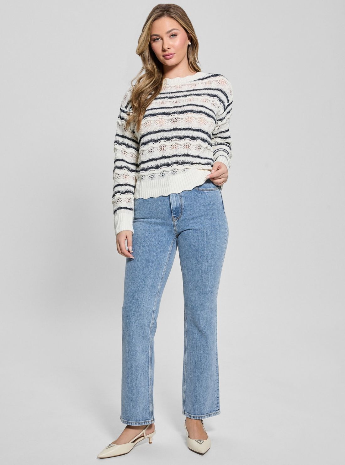 GUESS Womens White Blue Striped Valerie Sweater W5GR35Z3NJ0 Front View White Blue Striped Valerie Sweater White Blue Striped Valerie Sweater White Blue Striped Valerie Sweater