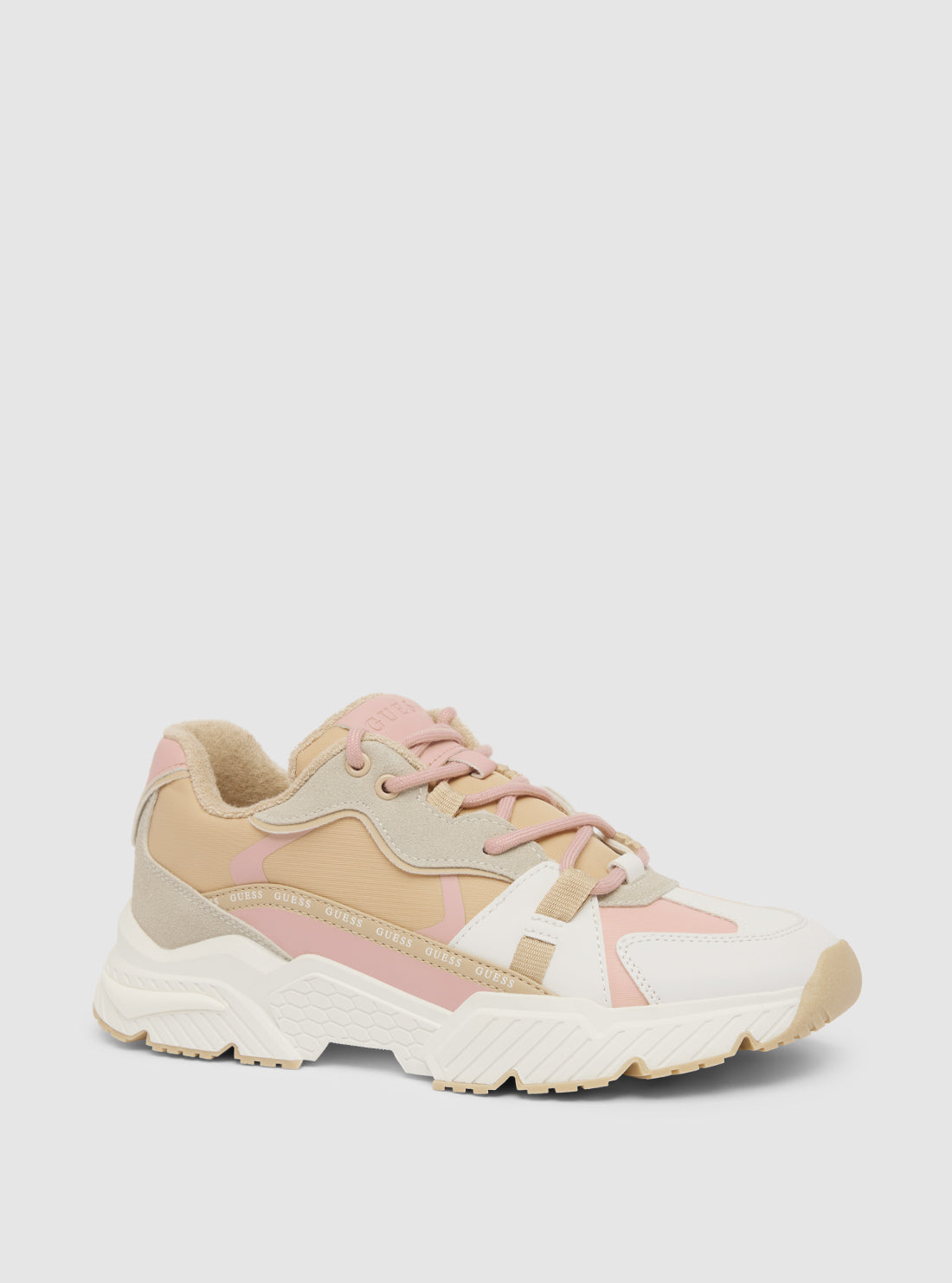 Add a sporty edge to your casual wardrobe with the White Carrli Sneakers. Designed with a chunky silhouette and panelled construction, these sneakers combine smooth Nappa PU, nylon twill, and shiny PU finishes for a bold, layered look. The cushioned sole delivers all-day comfort, while subtle branding adds a signature touch to this modern street-style essential.