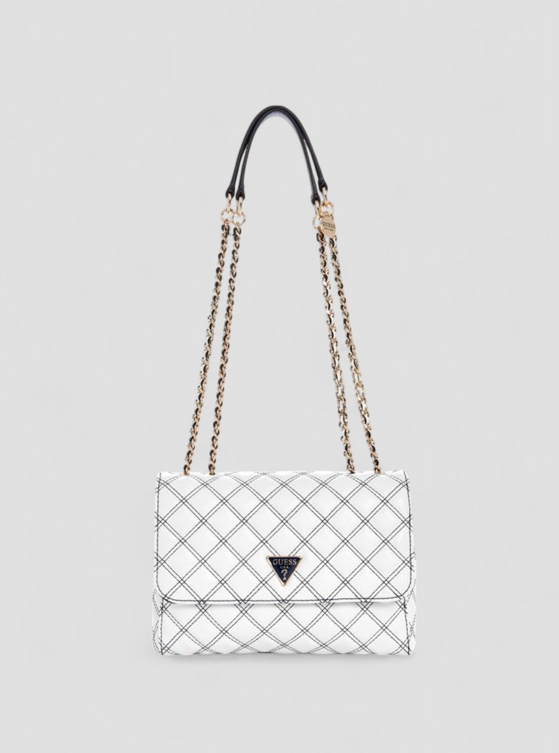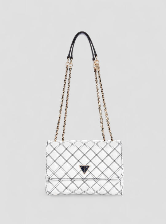 Get ready to elevate your look with the White Cruise Vibe Convertible Crossbody Bag. Perfect for brunch dates or evening events, this sleek accessory adds elegance to any outfit. Featuring a half flap closure, shiny gold-tone hardware, and a quilted finish, it blends timeless style with functional design. The chain and leatherette strap adjusts for short or long wear, making it a versatile must-have for every occasion.