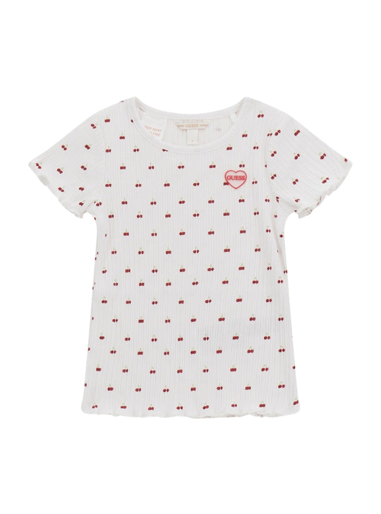 GUESS Kids White Fancy Rib Short Sleeve T-Shirt (2-7) K5GI19KCSQ4 Front View GUESS Kids White Fancy Rib Short Sleeve T-Shirt (2-7) K5GI19KCSQ4 Back View