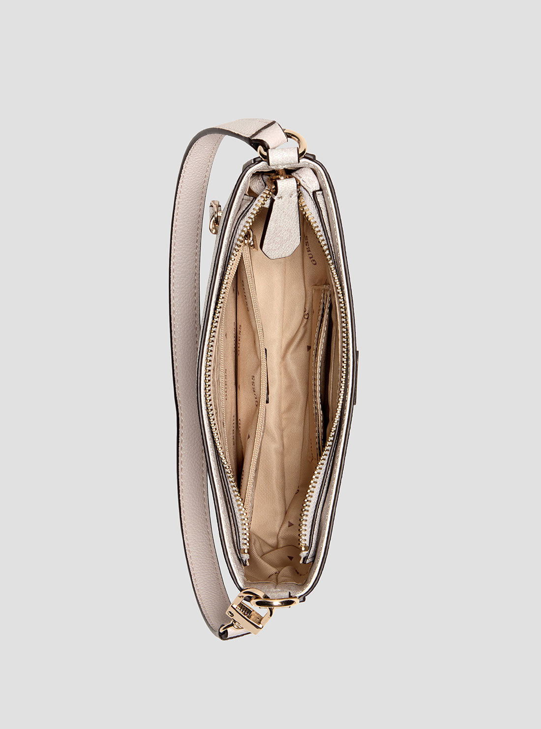 Zip up style with the White Logo Noelle Shoulder Bag. Convenient shoulder strap for easy carrying. Eco-friendly materials and shiny gold hardware add a chic touch. Carry your essentials with flair.