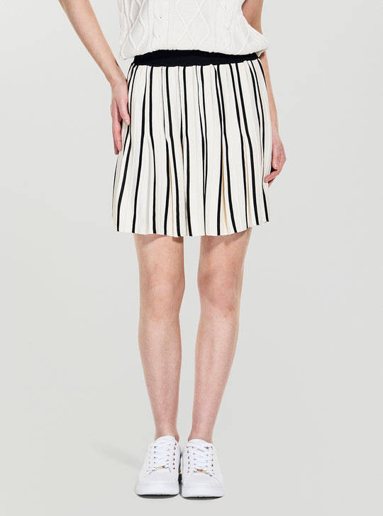 Elevate your wardrobe with the White Multi Active Sweater Skirt. Featuring a chic vertical stripe design, this skirt offers a flattering silhouette with a comfortable elastic waistband. Crafted from a soft viscose blend with nylon for stretch and durability, it’s the perfect piece to pair with casual tops or dressy blouses for versatile styling.