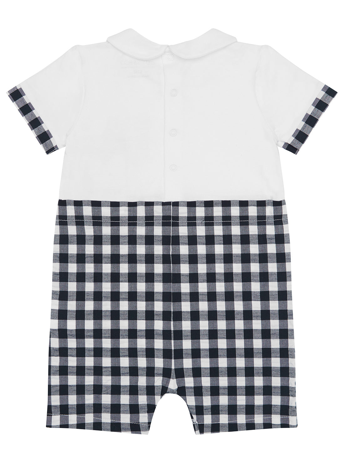 GUESS Kids White Seersucker Shortie Romper (0-12m) P5GG10K6YW4 Front View GUESS Kids White Seersucker Shortie Romper (0-12m) Back View
