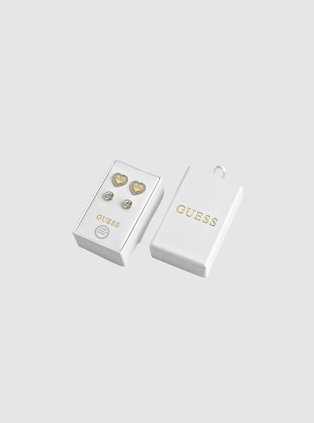 GUESS Accessories Gold Heart and Stud Earrings Set JUBS01802JW Front View GUESS Accessories Gold Heart and Stud Earrings Set JUBS01802JW Detail View